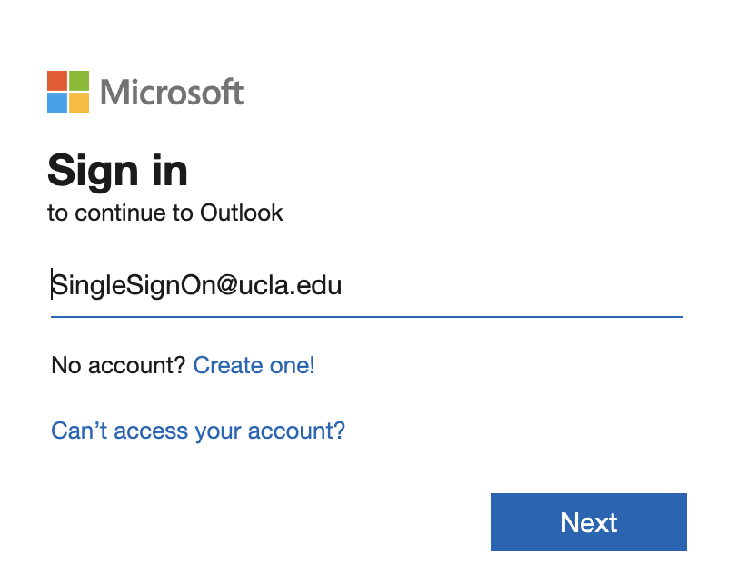 2. Type in your single sign on account and add @ucla.edu at the end and click next. Please note, you do not use your full email address on this field.