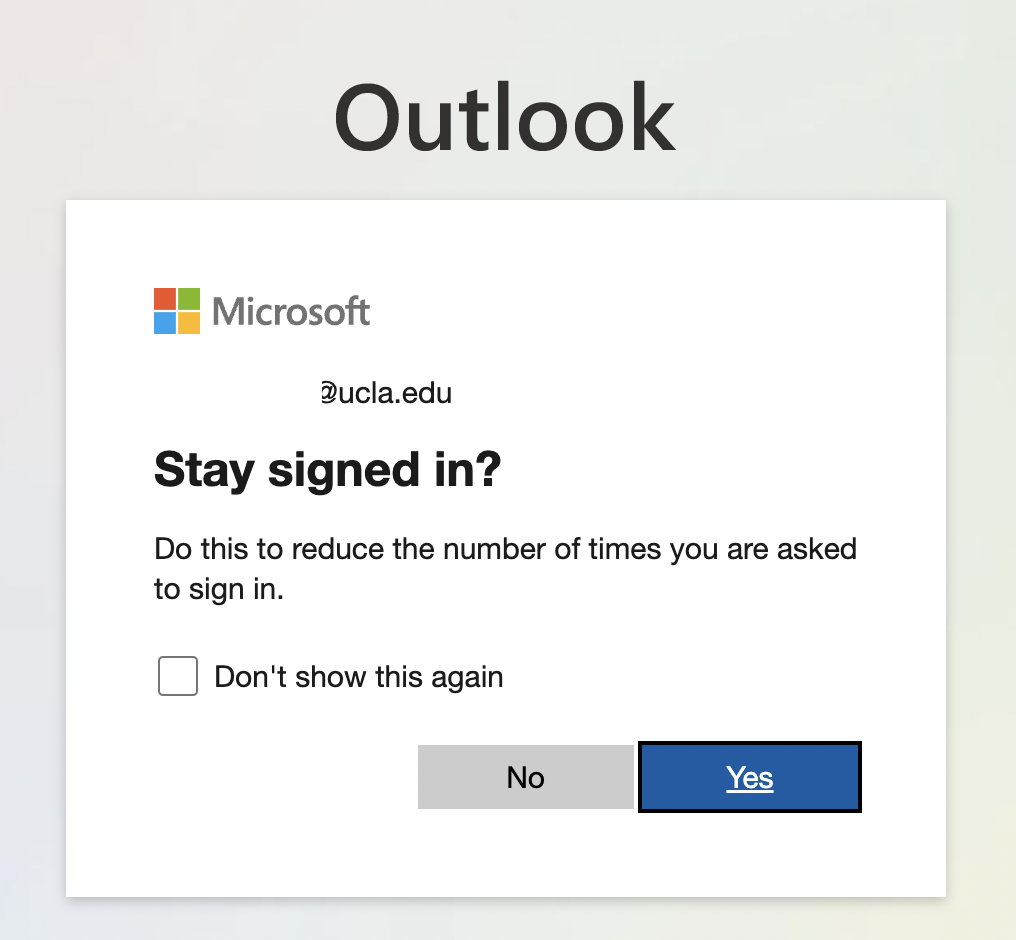 5. Next option will take you to a page if you want to keep you sign in active on your browser. You can choose to keep it active by putting a check on Don't show this again and clicking YES. Or just click NO and you will be asked to login on that browser every time.