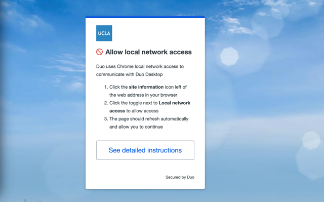 Duo Desktop requires Local Network Access when using Google Chrome: