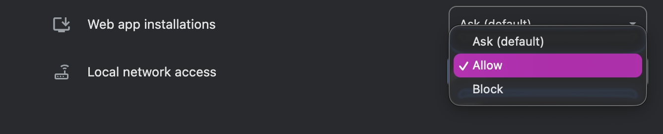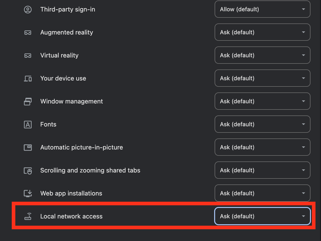 4. In the tab that opens, scroll to the very bottom of the page to locate "Local network access"